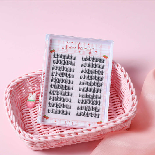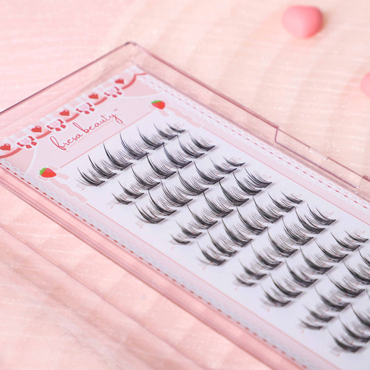 Shop Fresa Beauty's innovative invisible band cluster lashes and ultra thin black bands! The ultimate beginner's dream for flawless lashes.
